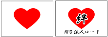 「Cハート」に絆やお・も・て・な・しを入れたり、下に団体名などを入れたり |